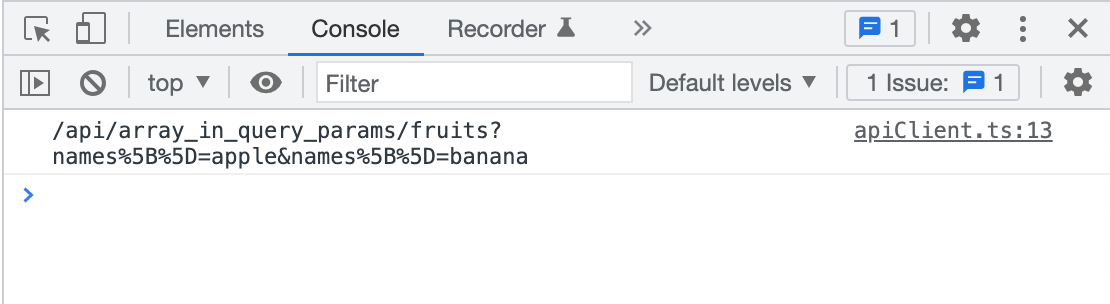 ブラウザのコンソールを見ても、 ?names%5B%5D=apple&names%5B%5D=banana のように Rails が期待する形でクエリパラメータが付与されていました。
