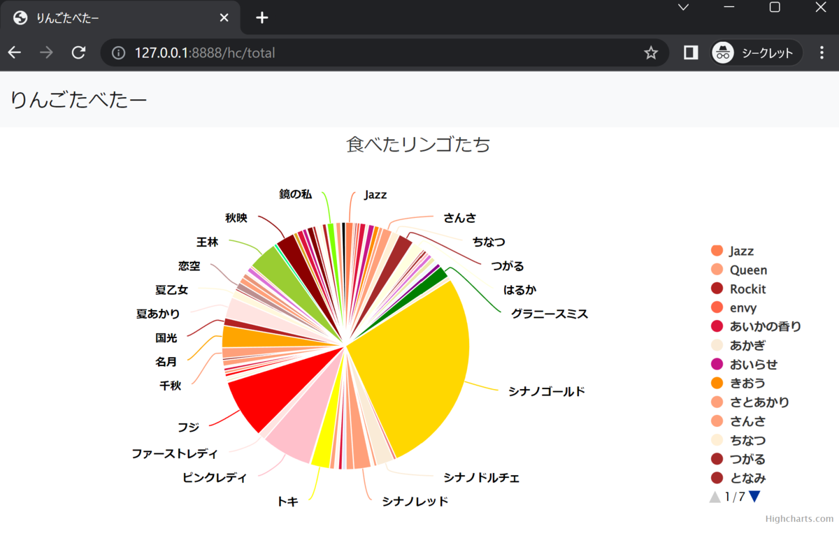 そこで、 http://127.0.0.1:8888/hc/total にアクセスすると、いつものアプリが表示されました。