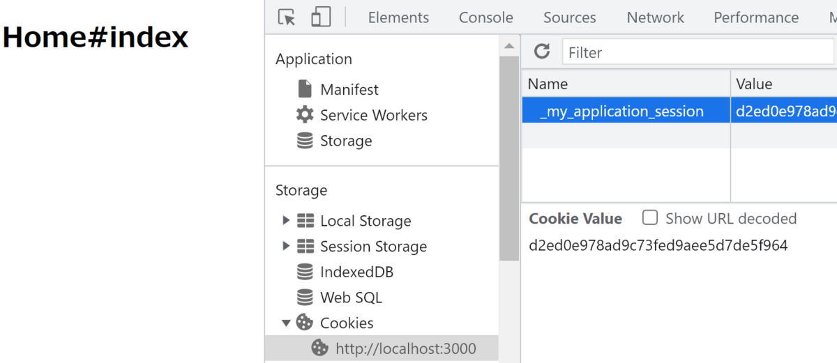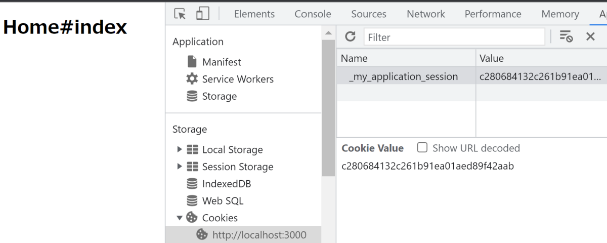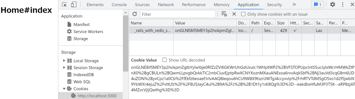 Railsを再起動し、アクセスしてみたところ、Cookieにセッションデータ一式が保存されました。