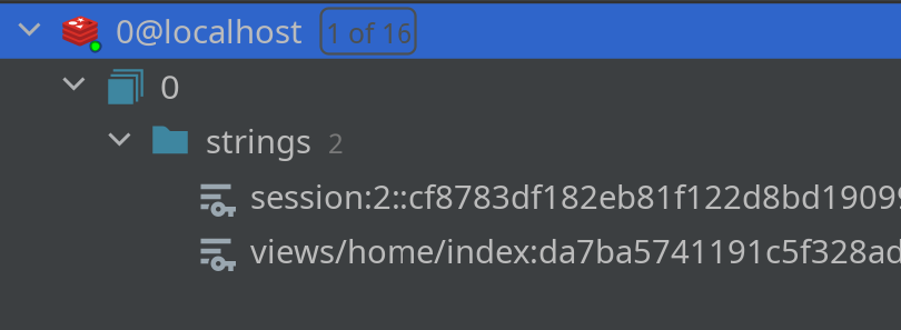 ブラウザでアクセスしたところ、キャッシュはRedisに保存されました。RubyMineで確認すると、以下のように表示されました。