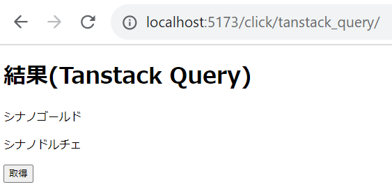 ボタンをクリックするとバックエンドAPIを呼び、その結果を画面に表示します。