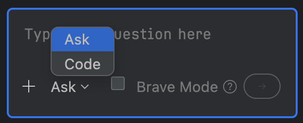 Junieではモードが Ask と Code の2つがありました。Clineの Plan と Act のようなものと考えています。