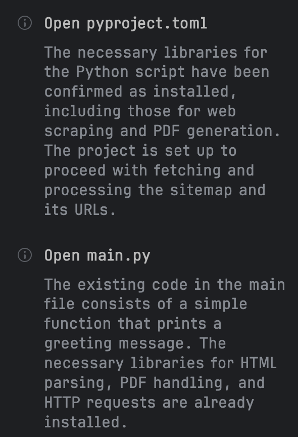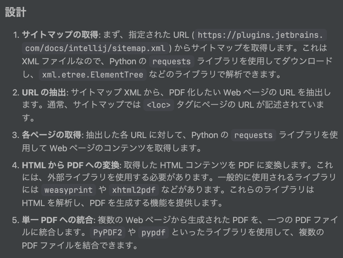 Webサイトをpdf化するPythonスクリプトを書くことも考えましたが、せっかくなので、GAになったJetBrains の Junie の性能や使い方を確認する題材とするのが良さそうでした。