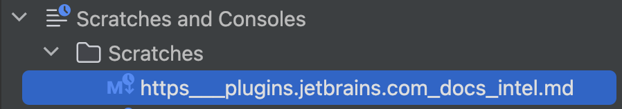 ちなみに、新しいエディタタブの内容は、左ペインの Scraches and Consoles の中に Scratches というのができ、その中にmarkdownファイルとして書かれているものを表示しているようです。これらのmarkdownファイルは git status しても出てこなかったことから、PyCharmが内部で管理しているものでしょうか。