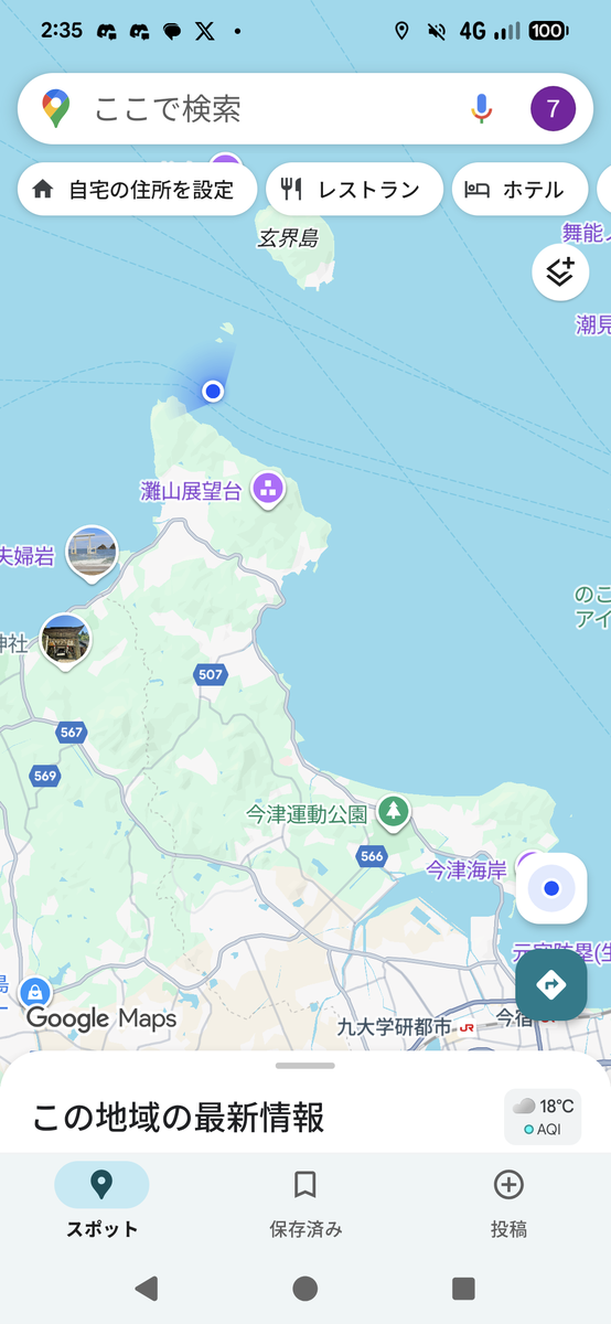 ちなみに、帰港途中で波が急に穏やかになったのに驚きGoogle Mapを起動したところ、内海に入っていました。外海と内海の違いを肌で感じました。